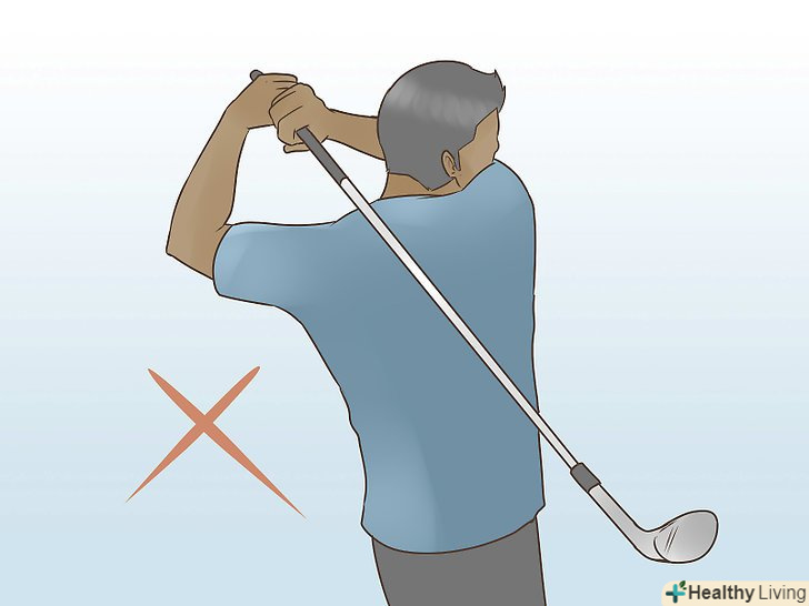 Намалюйте закруглену уявну лінію ходу ключки. навіщо це? Коли ви ставите ваші ступні і плечі, уявіть собі цю лінію, щоб направити плечі і ступні відповідно до неї. Під час удару, не виходьте за цю лінію, будьте всередині неї. Ця лінія повинна бути більше закругленою, ніж витягнутою вгору.