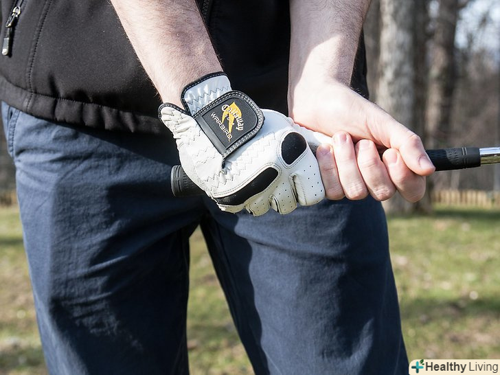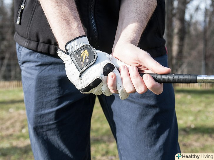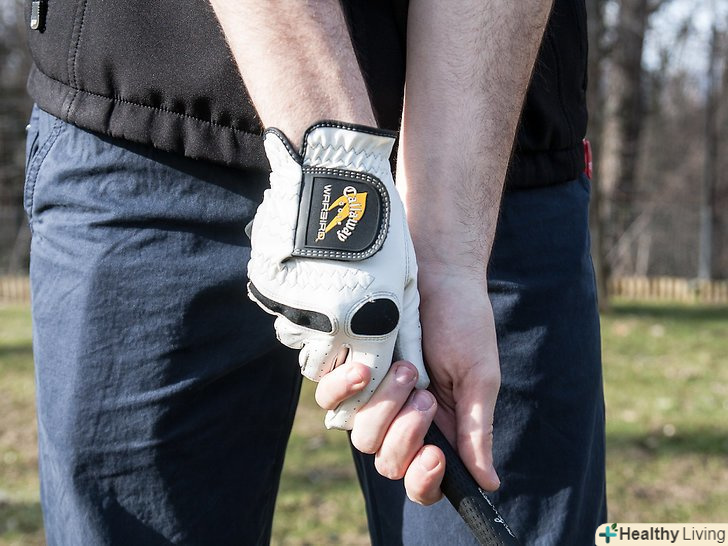 Використовуйте найбільш популярні типи Хватів для гольфу. більшість гравців з PGA туру використовують нахлест, винайдений легендою гольфу Гаррі Вардоном. Даний спосіб допомагає гравцям розширити свій діапазон і особливо ефективний для гравців з великими руками.- Візьміть ключку лівою рукою так, як ніби ви вітаєтеся нею з ким-небудь.