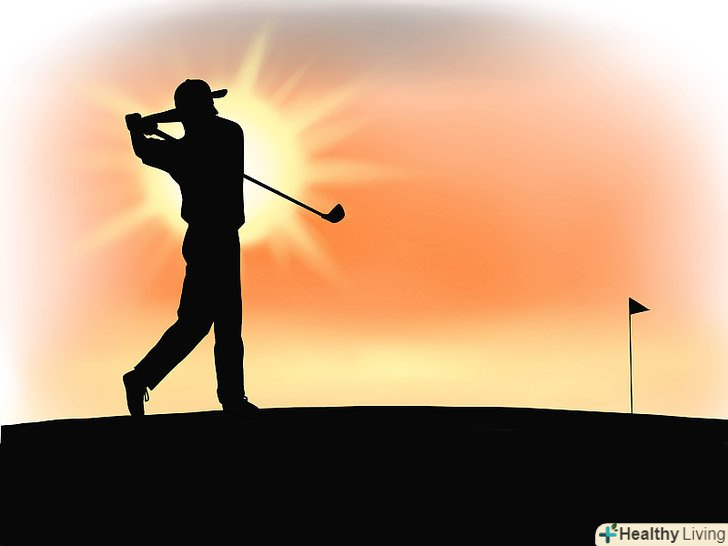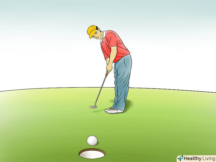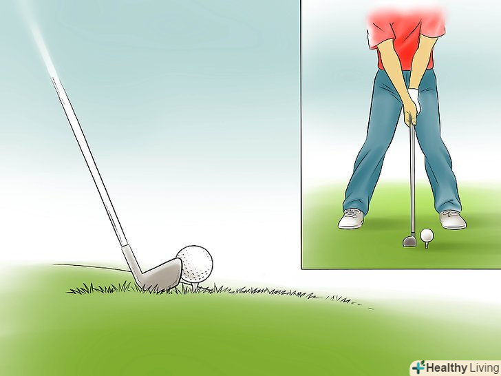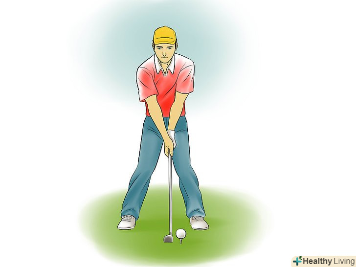 Навчіться приймати правильну стійку. щоб отримувати задоволення від гольфу важливо вміти добре бити, а хороший удар починається з хорошої стійки. Стандартна стійка для удару, це збалансована гнучка стартова позиція для вашого удару. Встаньте боком до м'яча (прямо у напрямку, в якому ви хочете запустити м'яч), ноги на ширині плечей. Трохи зігніть ноги в колінах і відведіть стегна назад, при цьому тримаючи спину рівною, німого нагніться над м'ячем. Є й інші способи і техніки, але основна стійка, з невеликими поправками використовується навіть професійними гравцями в гольф. Тримайте ключку за гриф двома руками.