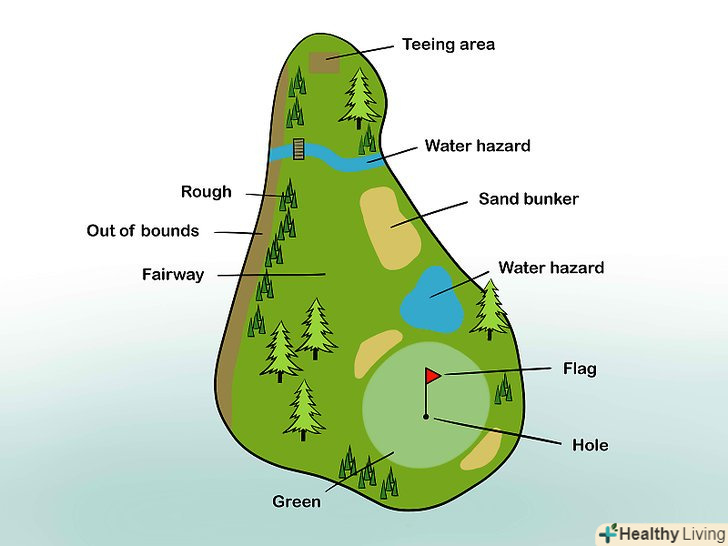 Навчіться розрізняти основні позиції на полі для гольфу. на кожному полі для гольфу є основні п'ять позицій, включаючи ті бокс. Інші позиції в грі позначені нижче:- Фарвей: фарвей це рівний майданчик поля для гольфу між стартовою позицією і полем.