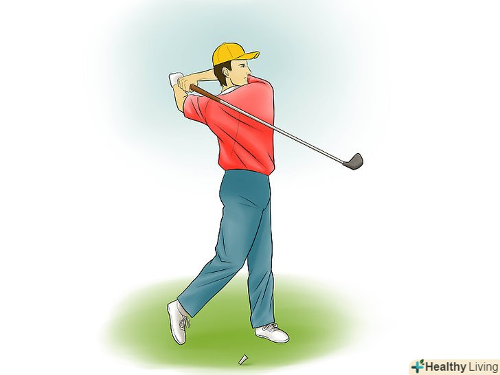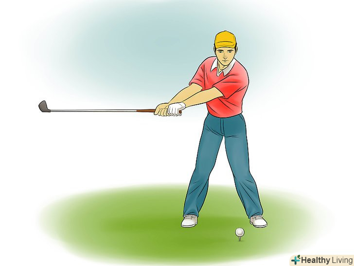 Замах. для хорошого, сильного удару підніміть ключку вгору і відведіть назад. Спробуйте спочатку повести головкою ключки, і нехай руки, ноги і плечі самі підуть за нею. Нарешті, щоб закінчити замах трохи підкрутіть стегна. Це дозволить максимально вивільнити силу для удару і при цьому не втратити рівноваги.
