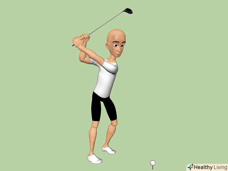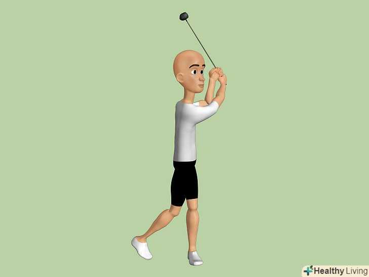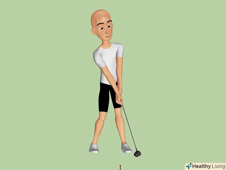 Регулярно розтягуйтеся і розігрівайтеся перед кожною грою. це дуже важливий крок. Завжди розтягуйте м'язи своєї спини для того щоб запобігти можливій травмі і розслабити спину. Попросіть свого лікаря або фізіотерапевта показати відповідні вправи на розтяжку, які допоможуть зміцнити спину, і спеціальні вправи, які можна виконати перед грою. Деякі вправи, які можуть стати в нагоді, включають: [1]- Потягніть плече і тулуб: Візьміть ключку для гольф Позаду шиї і плечей, обхоплюючи обидва кінці ключки руками, і злегка покрутіть з боку в бік. Виконайте так кілька разів.