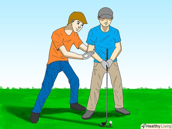 Візьміть урок. .. або навіть кілька уроків! Швидше за все, ви побували на тренувальному полі з друзями-гольфістами, і саме тому вирішили зайнятися цим спортом... вірно? Це відмінний спосіб познайомитися з грою, однак якщо ви хочете приступити до вивчення основ механіки ударів в гольфі, вам потрібно буде взяти уроки у сертифікованого професіонала (PGA або WGTF). На більшості пристойних полів для гольфу, як і на тренувальних полях, працюють професійні інструктори, і у них, як правило, є хороші комплексні пропозиції, а крім того вони часто дають групові уроки зі знижками. Візьміть індивідуальний урок, на якому професіонал навчить вас основам, наприклад, хвату, стійці перед ударом, положенню і механіці помаху. Не піддавайтеся спокусі дозволити друзям навчати вас. Хоча вони і діють з благих спонукань, вони більше нашкодять вашій техніці помаху, ніж допоможуть. Професійні гольфісти знають, як навчити людину помаху ключкою, на те вони і професіонали. Візьміть кілька уроків і навчіться грати правильно. Це дуже важливо.
