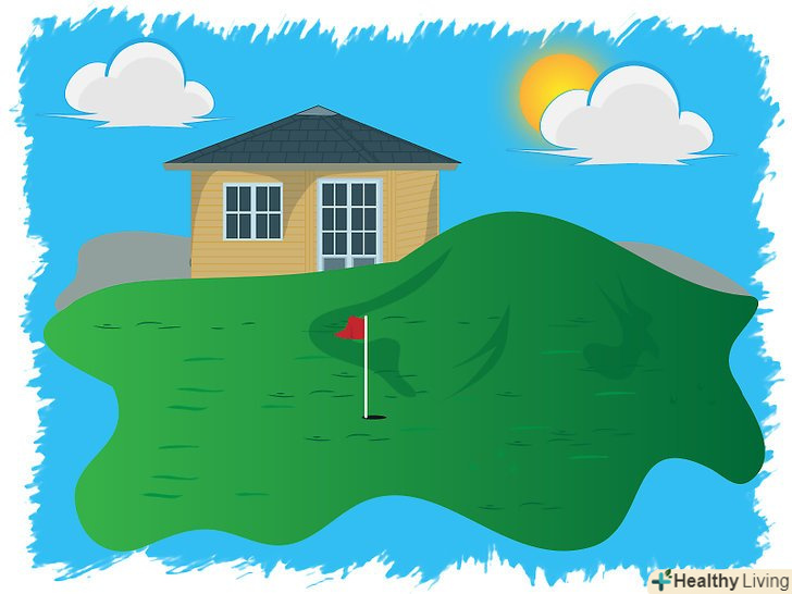Виберіть відкриту ділянку на задньому дворі, і визначте загальні розміри поля для гольфу. для гарного росту трави, планують розташування поля для гольфу в районі, який отримує багато сонячного світла.