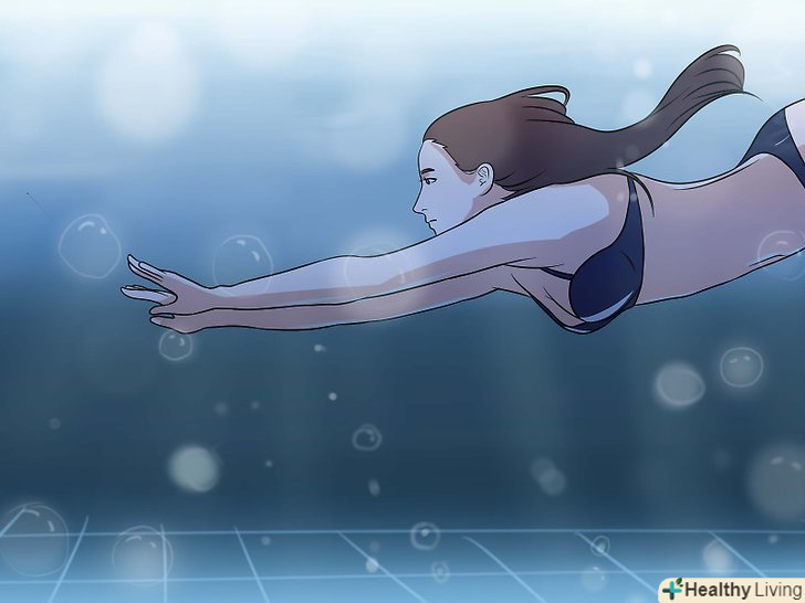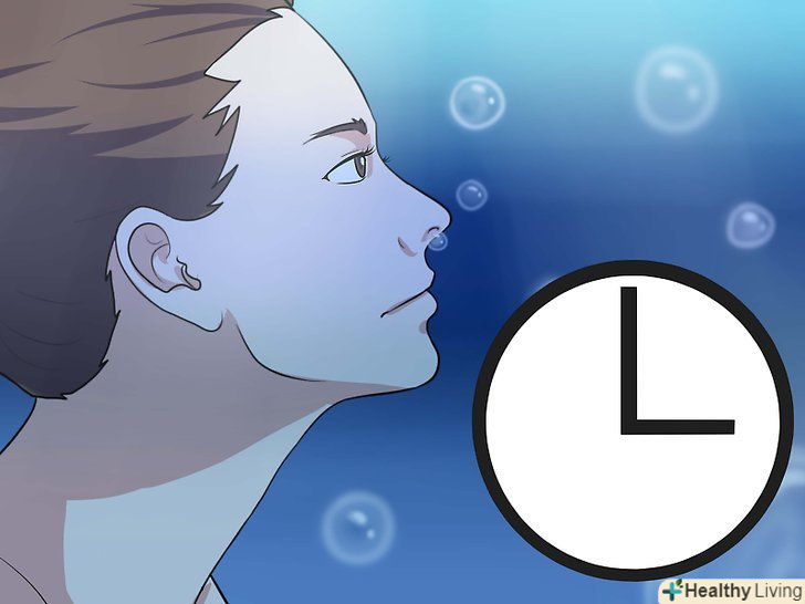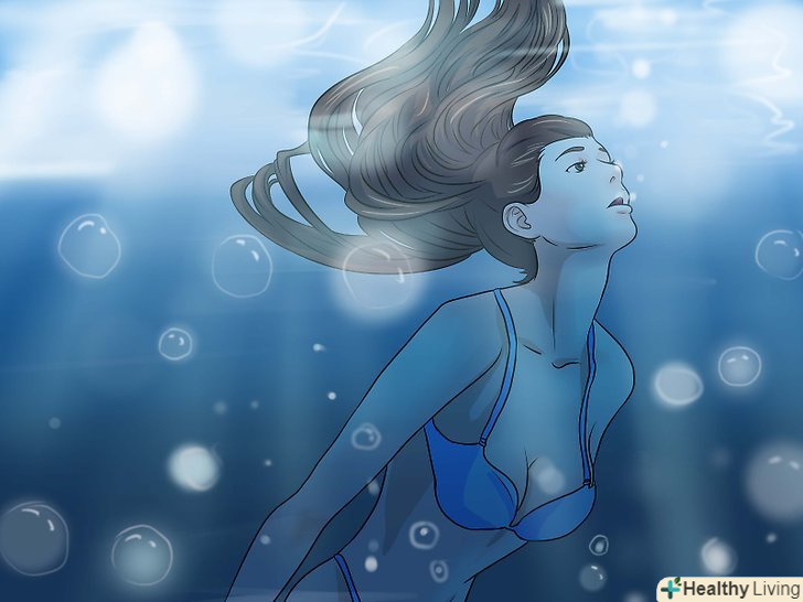 Занурте обличчя у воду з закритими очима. спробуйте звикнути до температури води. Також важливо зберігати спокій. Якщо відчуєте роздратування в носі, краще припинити, так як очі ще більш чутливі до хлору або до побічних продуктів інших засобів на галогеновій основі, які використовують для очищення води. [3]