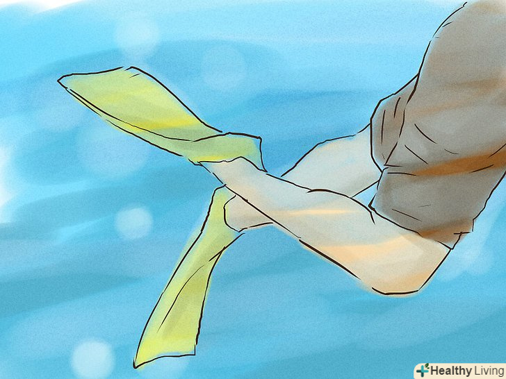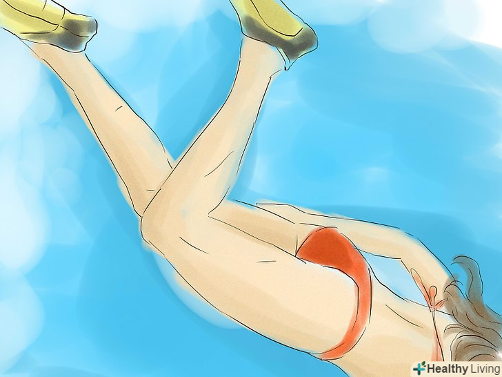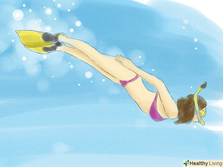 Трохи зігніть коліна і робіть повільні, але сильні удари ластами. Нехай ці рухи будуть плавними і розслабленими. Спробуйте робити рухи від стегна, уникайте ударів від коліна, так ви тільки даремно будете витрачати енергію. [6]