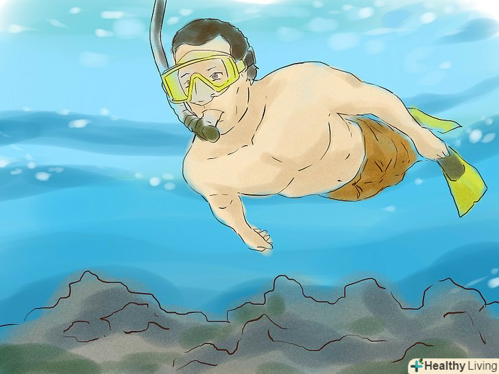 - Пам'ятайте про можливе зневоднення. У морі ваш організм може швидко втрачати рідину. Якщо ви плануєте плавати з трубкою годинами, то не забувайте робити перерви, щоб попити води. Що б не сталося, не пийте солону воду. [10]