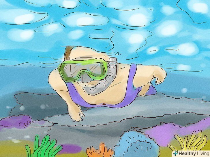 - Уникайте гіпервентиляції. Важливим моментом плавання з маскою і трубкою вважається спокійне рівномірне дихання. При гіпервентиляції ви можете втратити свідомість прямо у воді — а це може бути дуже небезпечно. [11]