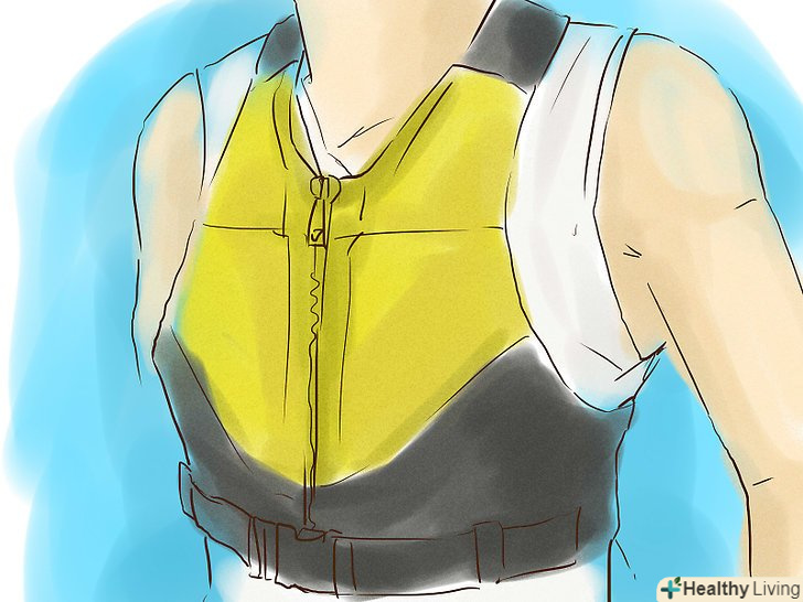 Одягніть жилет для плавання. Так ваше перебування на поверхні води буде простіше при мінімальних витратах енергії. У багатьох комерційних місцях для плавання з трубкою і маскою вимагають надягати яскраві жилети в цілях безпеки. [4]