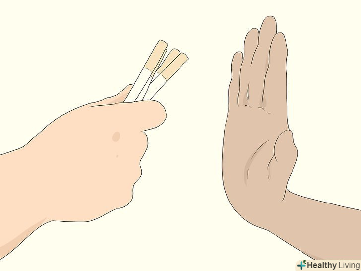 Киньте палити. всім давно відомо, що куріння негативно позначається на здоров'ї легенів. Якщо ви кинете палити, здатність легенів вивільняти вуглекислий газ і вбирати кисень значно збільшиться буквально за кілька тижнів. Якщо ви хочете зміцнити легені і підвищити їх ємність, то прагнення кинути палити має стати першим пунктом на порядку денному.- Також намагайтеся уникати пасивного куріння, яке теж негативно впливає на легені.