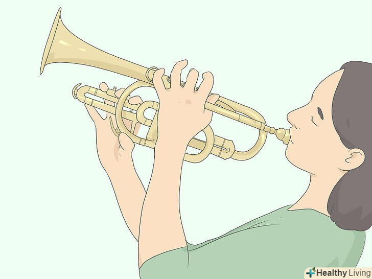 Грайте на духовому або мідному інструменті. для гри на таких інструментах вам буде потрібно значна сила легких. Це відмінний спосіб зміцнити легені і поліпшити свою здатність контролювати дихання. Крім іншого, гра на музичному інструменті-це прекрасний навик, який приносить неймовірне почуття особистого задоволення.- Флейта, кларнет, гобой або саксофон стануть хорошим варіантом духового інструменту, тоді як серед популярних мідних інструментів можна виділити трубу, тромбон і тубу.