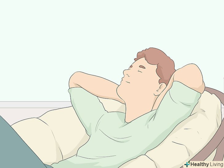 Розслабте кожен м'яз тіла. коли потрібно затримати дихання, дуже важливо повністю розслабитися і позбутися від будь-якої напруги в організмі. Закрийте очі і зосередьтеся на почерговому розслабленні кожної частини тіла. Починайте зі ступень і поступово рухайтеся до шиї і голові. Така вправа дозволяє значно уповільнити серцевий ритм і збільшити час затримки дихання. [4]- Зосередьтеся на розслаблюючій думці. Коли більше не вдається зберігати розслаблення, спробуйте відвернути себе яким-небудь заняттям з використанням рук (наприклад, можна вважати до 99 на пальцях ).