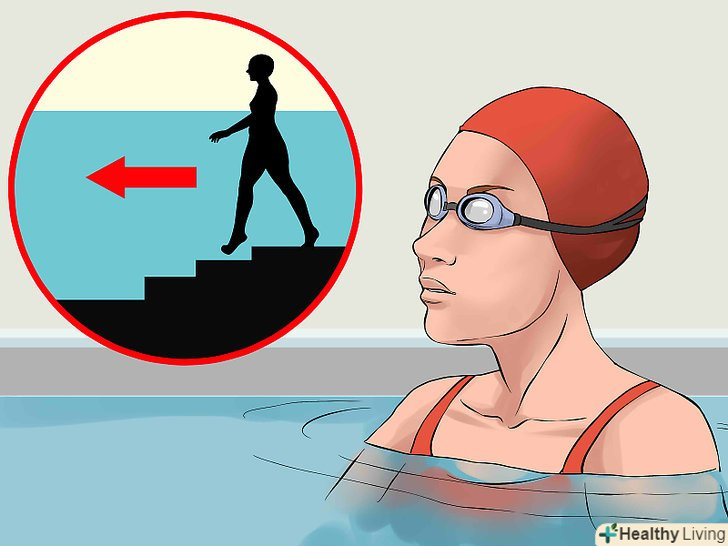 Намагайтеся повільно занурюватися в воду до тих пір, поки дістаєте ногами дно. Голова знаходиться над водою.