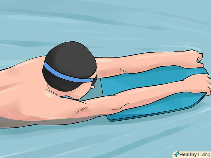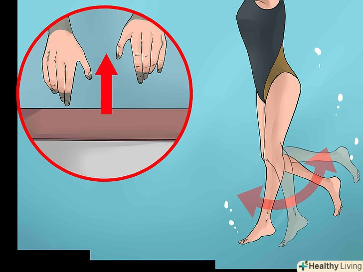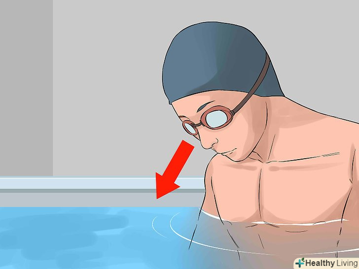 Коли ви готові, перестаньте триматися за стіну. відштовхніться від дна ногами. Гребіть руками і робіть помахи.