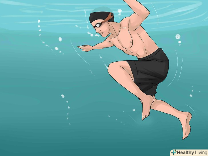 - Щоб утримати рівновагу таких плавальних гойдалок, дивіться вниз, розправте руки, як Супермен під час польоту і робіть помахи руками. Практично у всіх стилях плавання одна рука розправлена, а інша знаходиться у особи для того, щоб утримати правильну позицію тіла. Щоб піти каменем на дно, підніміть голову і перестаньте виробляти помахи руками, видихніть. Сила тяжіння переможе.
