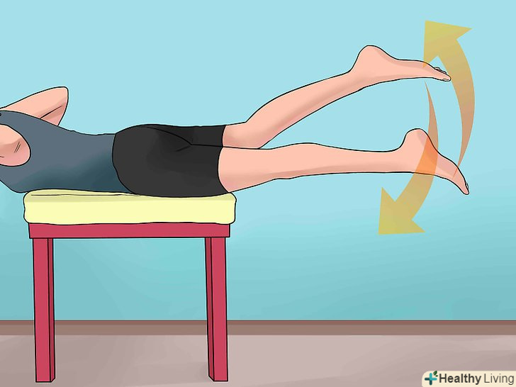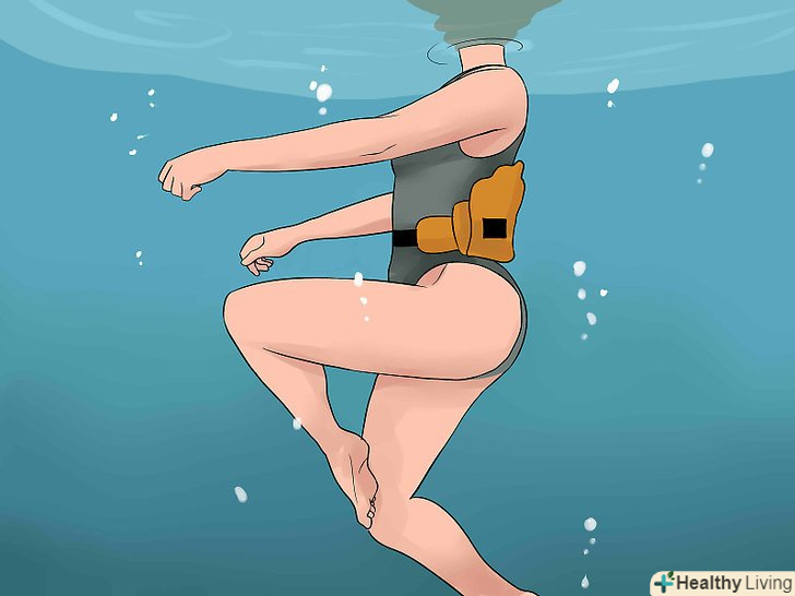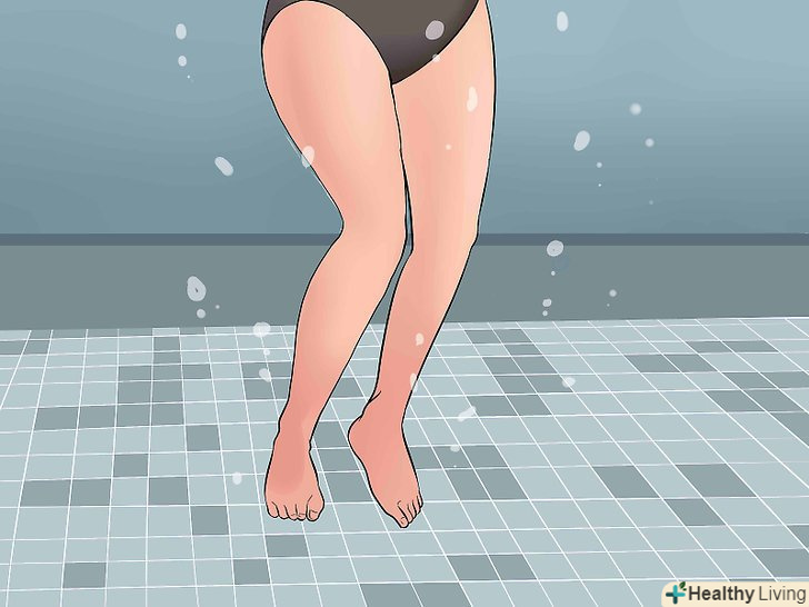 - Далі, рухайте ногами, як ножицями верх і вниз повільно. Це основний рух під час плавання на спині або на животі. Коли ви робите те ж саме у воді, ви працюєте ще й колінами. Практикуйте рух ножиці, сидячи в кріслі, зігніть ноги в колінах і витягніть шкарпетки. Так ви втримаєтеся на воді, піднімаючи стегна і ноги. Тримайте рівновагу.