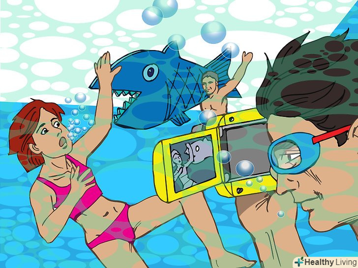 Купуйте дешеву підводну камеру та зніміть невелике відео. його героями можуть стати страшне морське чудовисько, плаваючі у воді риби або просто людина, яка любить купатися-ваші можливості тут безмежні!- Якщо ви ще й талановитий відеомонтажер, додайте в ваш фільм фантастичні спецефекти!