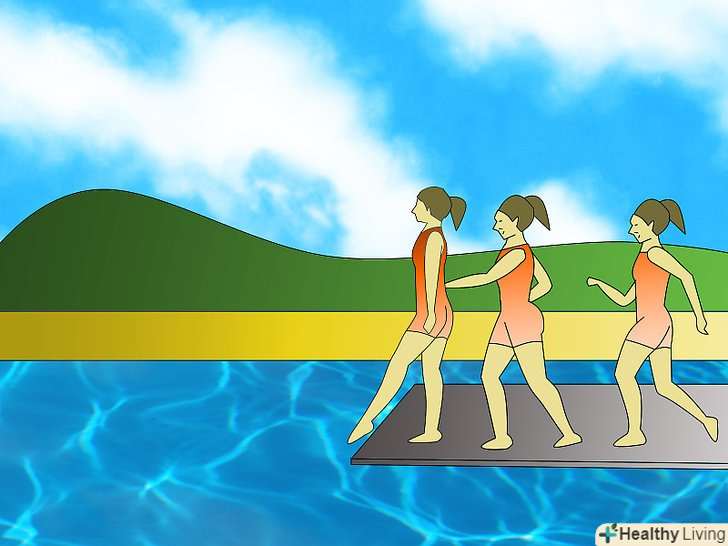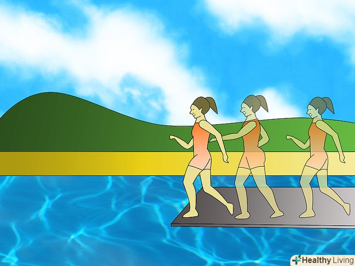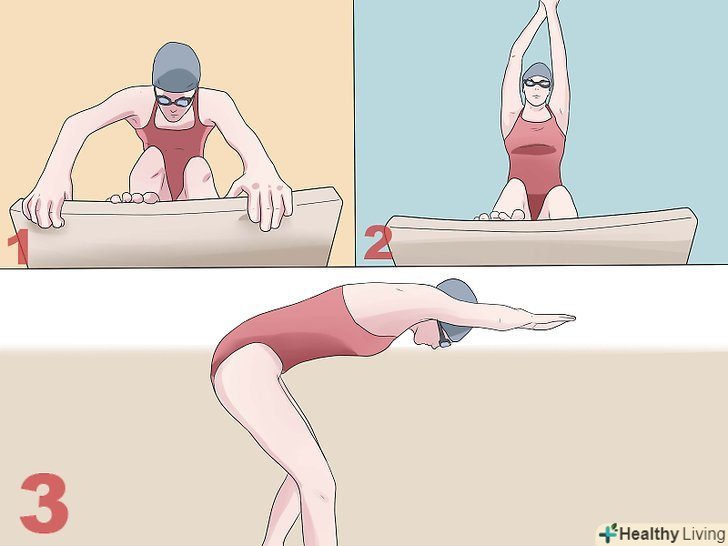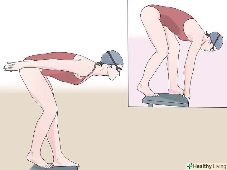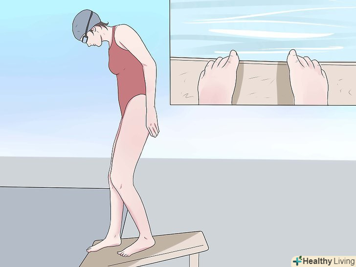 Станьте на краю басейну, нахиляючись вперед і чіпляючись пальцями ніг за край опорної стійки басейну.