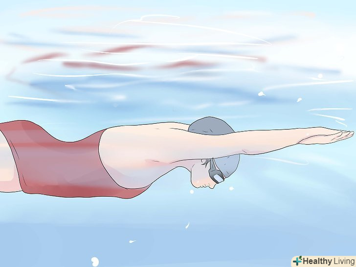 Як тільки ви ввійдете у воду, продовжуйте тримати пряму лінію тіла, щоб плавно ковзати вперед, як "стріла" або "торпеда". як правило, слід ковзати таким чином близько 5-ти секунд, але все залежить від сили вашого початкового поштовху від бортика.