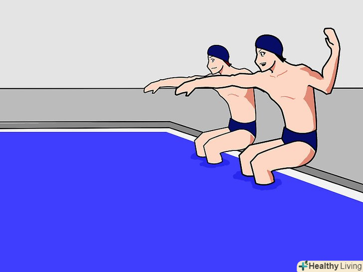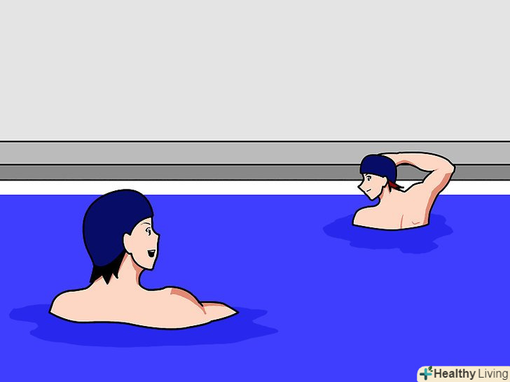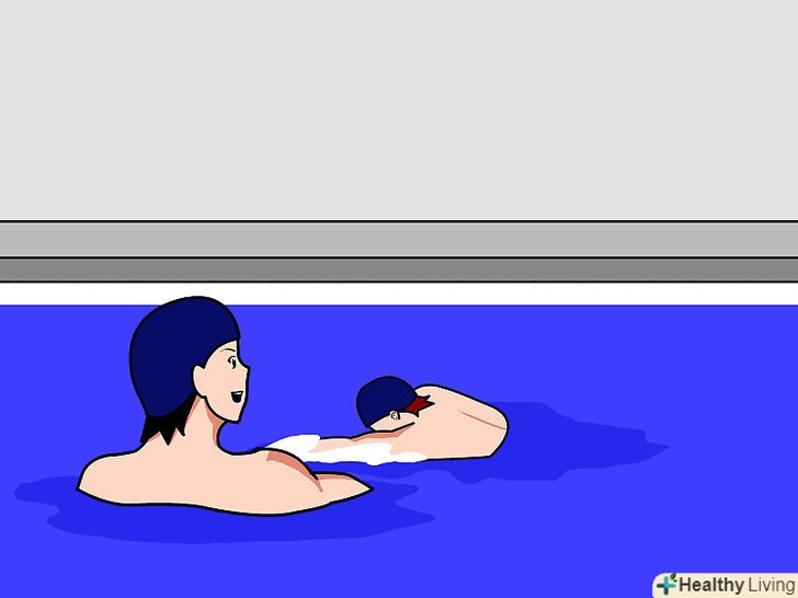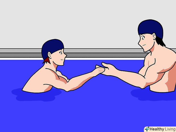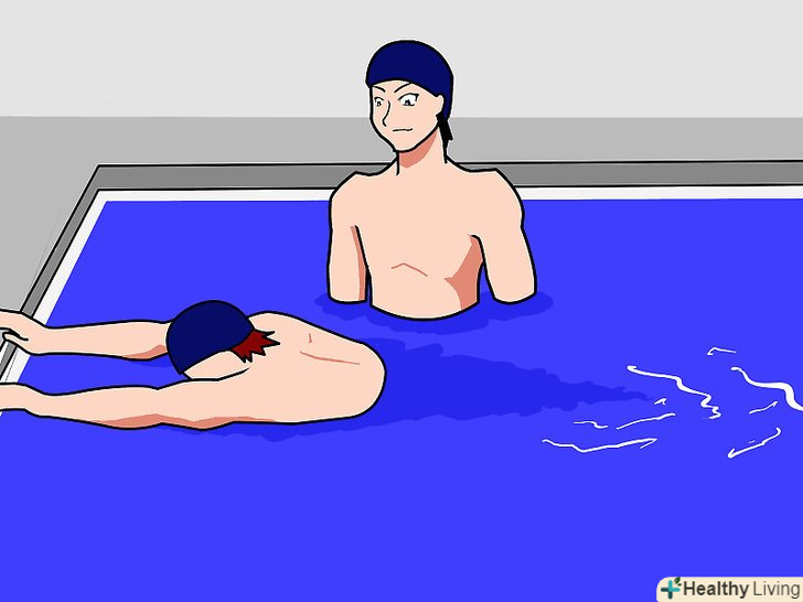 - Позбавте учня від страху перед водою. цей крок необхідний тільки в тому випадку, якщо учень боїться води. Поступово привчіть учня перебувати у воді, починаючи в дрібній частині басейну. Нехай він поплескує у воді, поки не звикне.