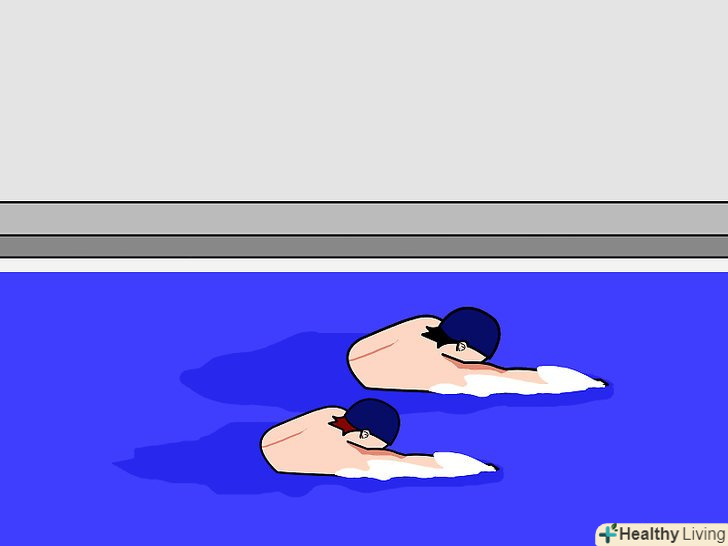 Зробіть перші кроки до плавання. нехай учень спробує поплавати на короткі відстані в дрібній частині басейну, використовуючи прості рухи, які йому найбільш зручні. Не надто тисніть на учня і не змушуйте його робити занадто багато на даний момент-можливо, це перші гребки в його житті.