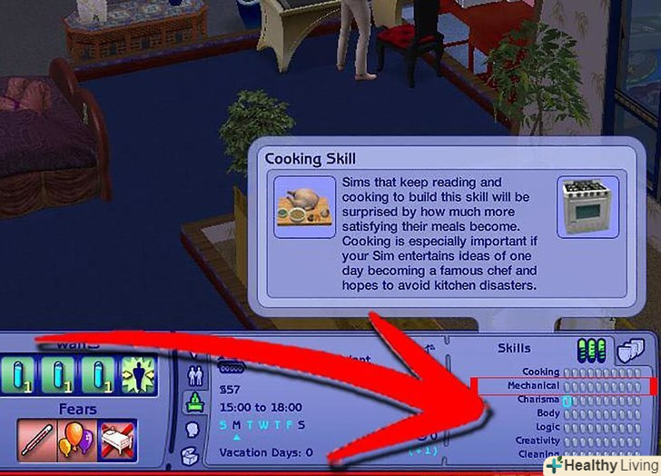 - Техніка-це вміння дозволить вашому сімсу лагодити різні предмети будинку, не будучи жертвою нещасного випадку. Це також корисно для такої кар'єри, як військова. Цей досвід можна отримати, відновлюючи предмети і вивчаючи механізми.
