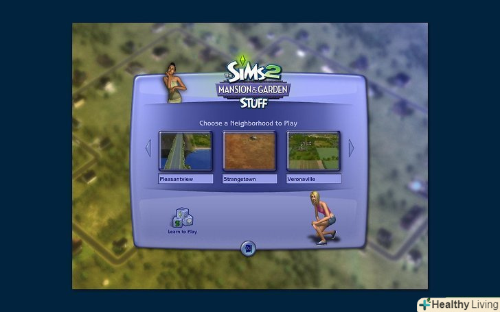Після завершення навчальної програми Виберіть район, в якому будете грати. У вас є 3 варіанти: Плезентвіль, Стрейнджтаун і Веронавіль. Плезентвіль починає розповідь про Sims 2; Стренджтаун - назва говорить сама за себе, дивне місто, в якому мешкають паранормальні речі, інопланетяни, примари, божевільні вчені і т.д.; Веронавіль – місцевість, натхненна сонетами Шекспіра, з Ромео і Джульєттою та іншими подібними персонажами. Виберіть район, який звучить найбільш привабливо для вас.