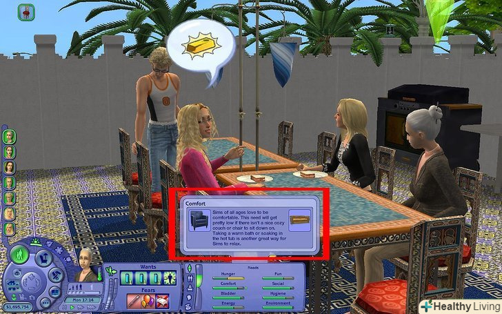 - Соціалізація-Сімси соціальні істоти. Щоб зберегти цю потребу в зеленому кольорі, ваші Сімси повинні взаємодіяти з іншими сімсами. Нехай вони розмовляють з іншими сімсами щоразу, коли потреба знижується. Ось чому 2 Sims рекомендуються для створення сім'ї.