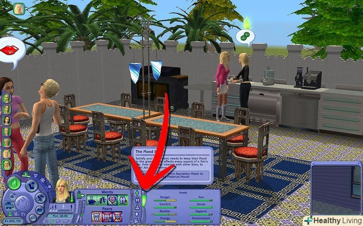 Виконуйте бажання вашого Сімса.у кожного Сімса є список з 4 бажань і 3 страхів. Виконуйте бажання, збираючи окуляри бажань (які можуть бути використані для придбання прикольних речей пізніше в грі) і усувайте страхи окулярами прагнення. Коли бажання або страхи наповнені, вони зникають і з'являються нові. Бажання і страхи Сімс впливають на рівень прагнення, який піднімається кожен раз, коли ви заповнюєте бажання, і опускається, коли ви заповнюєте страхи. Лічильник прагнень буде опускатися кожен раз (в той час, як не одне прагнення не виконується). Тримайте вашого Сімса щасливим, виконуючи деякі його / її бажання. Бажання будуть виглядати приблизно так:»зустріти нового Сімса (+1000 очок до прагнення)".- Коли рівень прагнення досягає максимального рівня, ваш Сімс буде нагороджений платиновим прагненням, а це означає, що він буде ігнорувати показник "настрою" (коли рівень настрою нижче середнього, ваш Сімс буде відмовлятися робити те, що вимагає зусиль, наприклад, навчання) і буде робити все, що ви захочете.