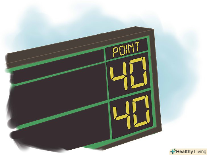 Знайте, що в разі затяжної гри пліч-о-пліч вам необхідно набрати більше двох пунктів для виграшу. це відноситься як до геймам, так і до сетів. Ось кілька прикладів: [3]- Якщо рахунок в геймі «40-40», то вам треба виграти два очки поспіль, щоб перемогти в ньому (в кроці 3 наступного розділу ми розповімо про це більш детально).