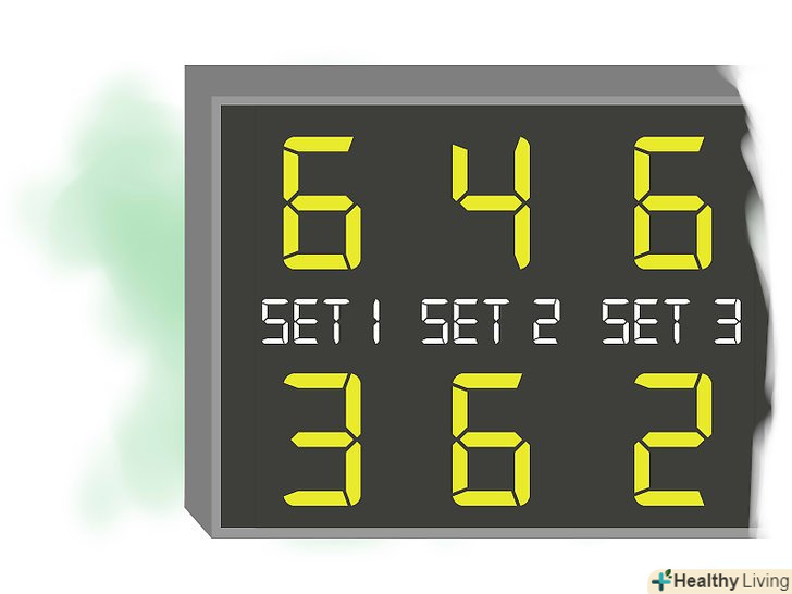 Знайте, як записувати рахунок після матчу. Вам потрібно написати рахунок кожного сету в спеціальній картці. Ви завжди повинні писати ваші набрані очки в першу чергу. Наприклад, якщо ви виграли матч, ваша картка учасника повинна виглядати наступним чином:- 6-3 , 4-6, 6-2 . Це означає, що ви перемогли в першому сеті з рахунком 6-3; потім програли другий сет 4-6 і виграли третій сет з рахунком 6-2.