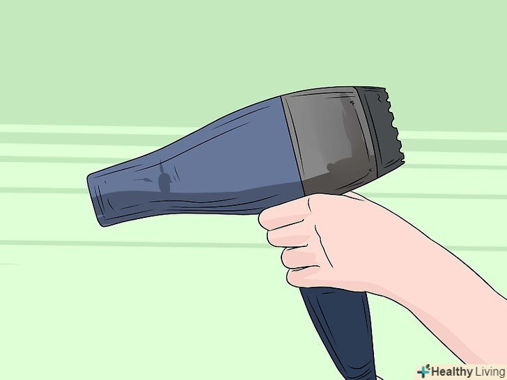 Помістіть м'ячик під потік гарячого повітря. Тримайте його рукою. Хоча тенісні м'ячики можуть легко запалюватися, використовуючи фен, ви не отримаєте опік. Тримайте м'яч на відстані 15-20 см від фена.- Увімкніть фен, направте струмінь повітря вертикально вгору і помістіть в струмінь тенісний м'ячик.