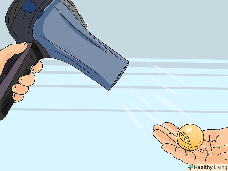 Зачекайте, поки м'яч придбає первісну форму. Тримайте м'ячик таким чином, щоб потік повітря був спрямований на сторону з вм'ятиною. Періодично прибирайте його від потоку повітря і давайте йому можливість охолонути, щоб уникнути деформації.- Відремонтований м'ячик буде відрізнятися за формою і розміром від нового.