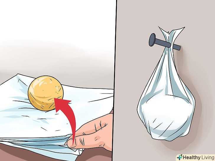 Загорніть м'ячик в тканину і підвісьте його (за бажанням). щоб уникнути появи вм'ятини, ви можете підвісити м'ячик на цвях, попередньо загорнувши його в тканину. Однак в цьому немає особливої необхідності, так як ви не будете використовувати окріп, як це було в першому випадку, а лише потік гарячого повітря.