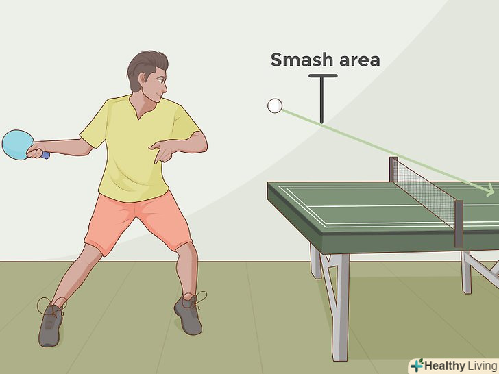 Удари зверху вниз( смеш), які ваш опонент б'є високо. при смеш ударах (також званих лясканням або пронизуванням) м'яч летить з великою силою і швидко, тому потрібно встигнути зреагувати на удар. Смеш-це потужна зброя, але це може бути важко точно використовувати його, і ви можете виявити, що ваші смеші спочатку йдуть у сітку, ну або на іншу сторону столу. Не бійтеся і пробуйте. В кінцевому рахунку у вас все вийде.- Це схоже на волейбол. Як тільки ви проб'єте смеш, вашому противнику фактично неможливо буде утримати м'яч в грі. Це буде одним з ваших найбільш використовуваних навичок і засмучують противника.