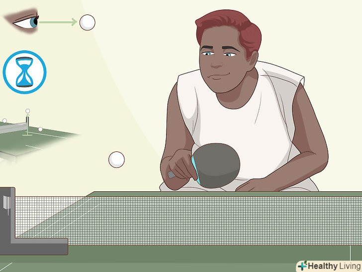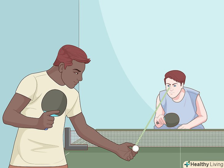 Постійна практика. ви можете стати досить гарні для пінг-понгу, постійно практикуючись. Найважливіші речі, які потрібно практикувати: пильно стежити за м'ячем, отримувати почуття правильного часу і вміти низько тримати м'яч.- З самого першого моменту, коли ви піднімаєте ракетку, ви повинні свідомо зробити зусилля, щоб стежити за м'ячем очима, з моменту його подачі і далі.