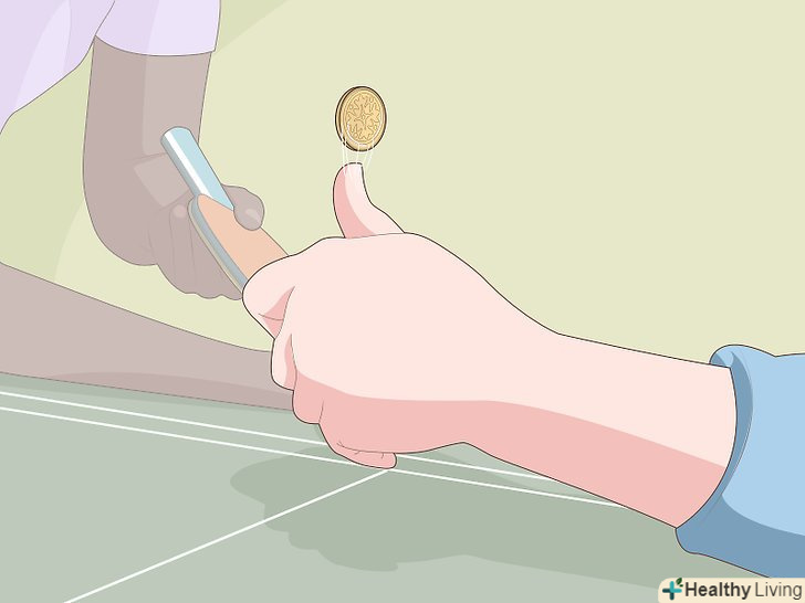 Вирішіть, хто подає першим. за офіційними (ITTF) правилами Міжнародної Федерації настільного тенісу, право на вибір першої подачі визначається за жеребом (підкинута монетка, зламаний сірник тощо); переможець вибирає, або кому подавати першим, або з якого боку столу грати. Якщо переможець вибирає подачу, то противник отримує право вибрати, з якого боку столу він буде грати, і навпаки.- У більшості пінг-понгу ігор існує швидкий обмін ударами, як правило, з кожним гравцем, викладенням однієї літери слова P-I-N-G для кожного удару, який вони роблять. Після того, як слово p-I-N-G прописано, людина, яка виграла обмін ударами, подає першим або вибирає, з якого боку столу він хоче грати.
