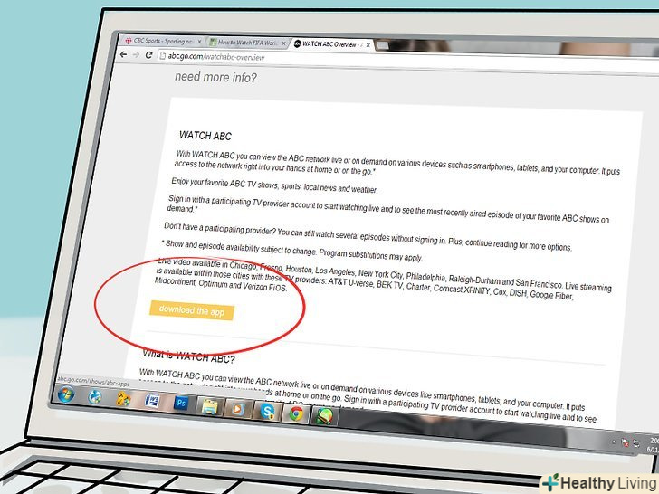 Скористайтеся додатком ESPN Free. ESPN-один з лідерів спортивного мовлення і пропонує безкоштовний стрімінг матчів через свій додаток. [2]- Вам потрібно буде створити обліковий запис і зареєструватися, щоб отримати доступ до трансляцій.