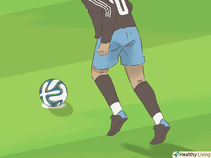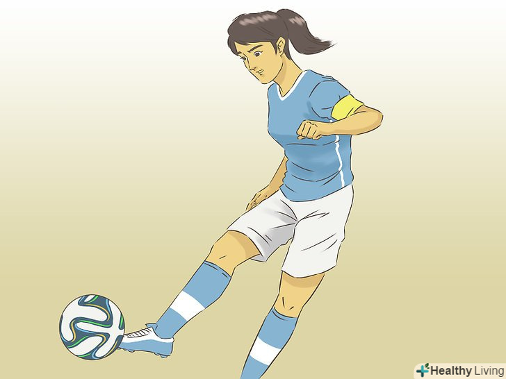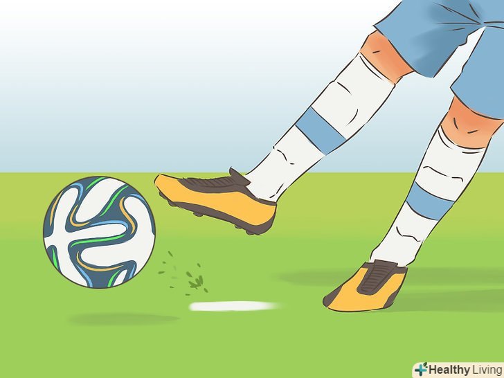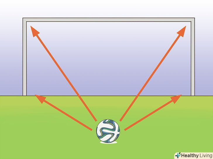 - Якщо ви хочете, щоб м'яч полетів високо, заводите свою ногу позаду м'яча і зіпріться на неї, щоб вдарити під низ і потрапити під поперечину. Ви повинні зробити це, якщо хочете потрапити у верхній кут.