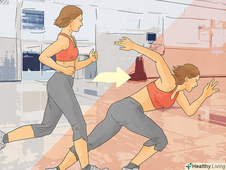 Виконуйте інтервальні тренування. [7] щоб ефективно використовувати швидкість на полі, необхідно звикнути до швидкісних Ривків упереміж з іншими рухами. Щоб цього домогтися, займіться інтервальним тренуванням протягом 30 хвилин. Чергуйте легкий біг підтюпцем (5-10 хвилин) з короткими проміжками більш інтенсивних вправ, таких як:- Спринт