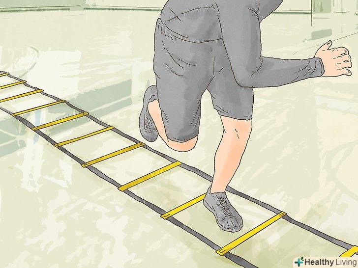 Скористайтеся швидкісною або Координаційною сходами. [5] [6] тренування зі швидкісними сходами поліпшать вашу швидкість, спритність нижньої частини тіла, рівновагу і координацію. Це горизонтальне пристосування змушує спортсмена під час бігу перебирати ногами. Щоб поліпшити свою швидкість, тренування зі сходами краще проводити з секундоміром. Під час тренування постарайтеся побити свій найкращий час.- Швидкісні сходи можна купити в багатьох магазинах спортивних товарів.