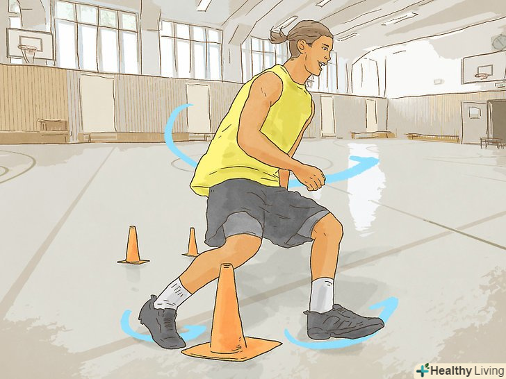 - Тренуйтеся швидко змінювати напрямок під час дриблінгу і виконуйте вправи на швидкісний дриблінг. Виконуйте вправи, намагаючись ухилитися від іншого гравця, щоб навчитися швидкому дриблінгу і вмінню обігравати опонента.