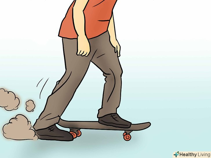 Зніміть задню ногу зі скейтборду і дуже легко помістіть її на землю, повільно додаючи більше тиску, поки не зупинитеся.
