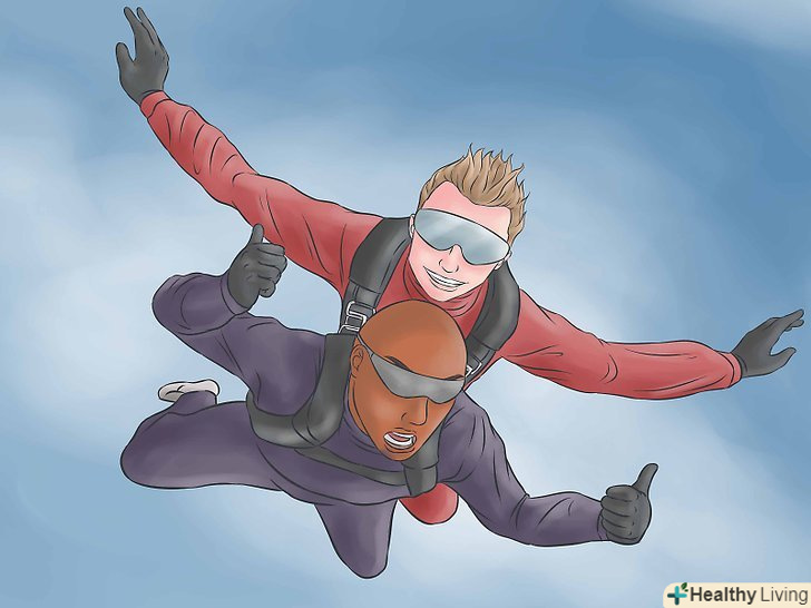 Виберіть тип Вашого першого стрибка.- Більшість людей вважають за краще почати з тандемного стрибка. В цьому випадку ви будете стрибати з літака разом з інструктором на парашуті, який може витримати двох осіб. Для тандемного стрибка не потрібно спеціальної підготовки, так що ви можете просто розслабитися і насолоджуватися польотом. Інструктор виконує всі технічні завдання.