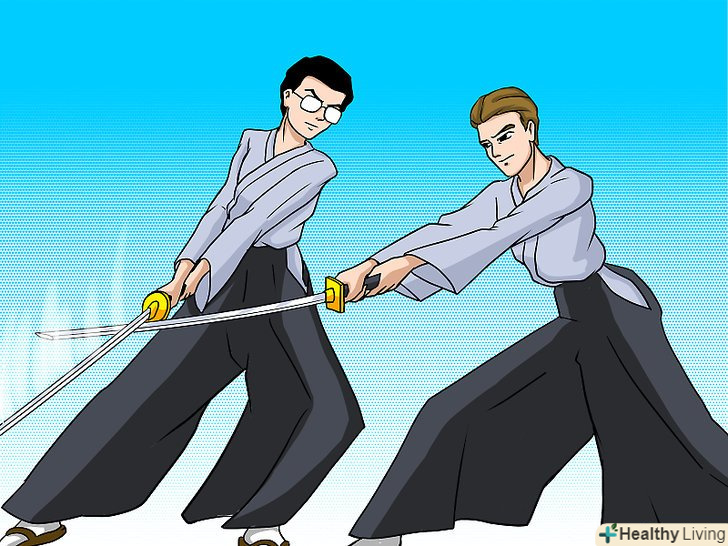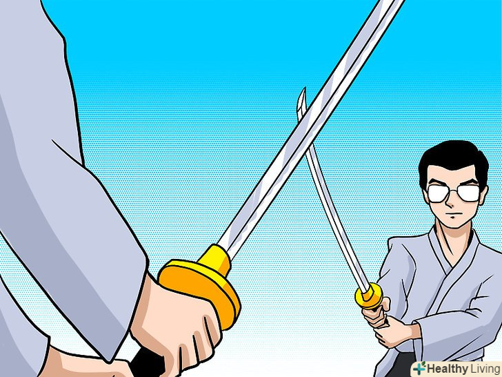 - Ви повинні знати довжину свого меча. Якщо обидва бійці знають довжину своїх мечів, тільки тоді буде можливість краще потрапляти по цілі, на 15 см або близько того. Слідкуйте постійно за своїм мечем і мечем опонента. Однак орієнтуватися тільки на меч суперника не рекомендується, так як ви можете бути введені в оману. Кваліфікований борець повинен вміти вгадувати напрямок наступного удару суперника, досліджуючи його / її поставу.