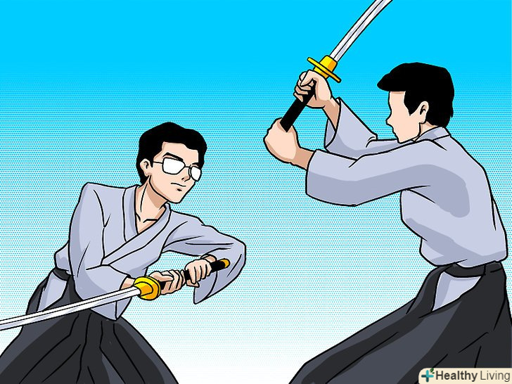 Вступайте в бій з обережністю. Якщо ви починаєте необачно, особливо проти навченого бійця, він може просто чекати, коли ви самі натрапите на його меч. Вступаючи в бій обережно, Ви можете зберегти контроль і сфокусуватися. Це також дозволить краще захищатися, тому що більшу частину часу просто обходячи (з боку) свого атакуючого опонента, ви потенційно врятуєте життя і відкриєтеся для виграшного удару. Ухилення працює дуже добре на відкритому просторі або, якщо ви швидкі, в критому залі.