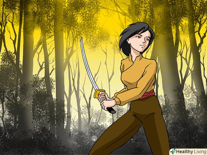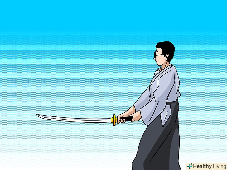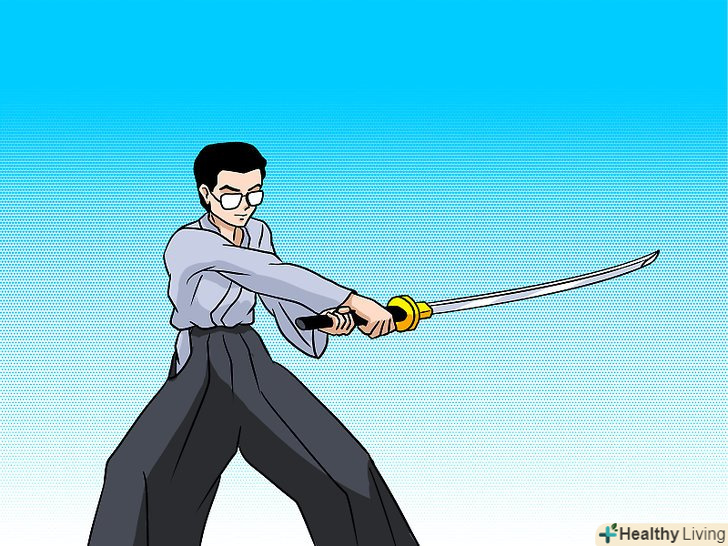 - Позиціонування тіла має важливе значення. Тримайте тіло перпендикулярно і плечем руки, в якій знаходиться меч, вказуйте на свого супротивника (як це робить фехтувальник). Це робить ваш тулуб меншою метою і захищатиме багато ваших життєво важливих органів.