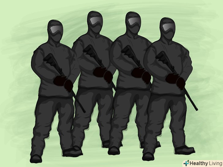 - Переконайтеся, що всі ділянки шкіри закриті одягом. Попадання пейнтбольного кульки досить болючі, і особливо це відчутно при попаданні на відкриту шкіру.
