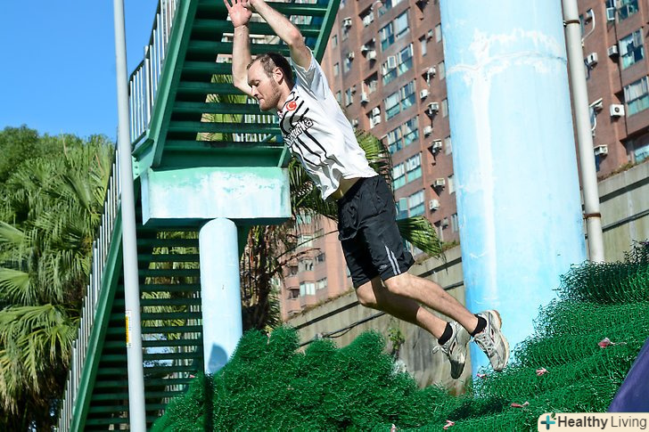 - Під час виконання цього руху не можна раптово сповільнюватися, інакше ви травмуєте себе. Вам потрібно вміти рівномірно розподіляти енергію стрибка в просторі і в часі. Витягніть пальці ніг і зігніть ноги в колінах, щоб ваше тіло взяло на себе шок від приземлення. Ви також можете грюкнути об землю руками, які теж візьмуть на себе енергію приземлення.