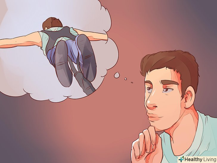 Зрозумійте, що страх - це цілком нормально. Страх і напруженість вашого тіла - це інстинкт самозбереження. Спробуйте переконати свій розум, що ви не заподієте собі шкоди. Все відбудеться дуже швидко, тому дозвольте всьому йти своєю чергою.- Перед стрибком не дивіться вниз! У вас буде достатньо часу, щоб помилуватися пейзажем під час стрибка. Якщо ви подивитеся вниз, ви можете злякатися і передумати стрибати.
